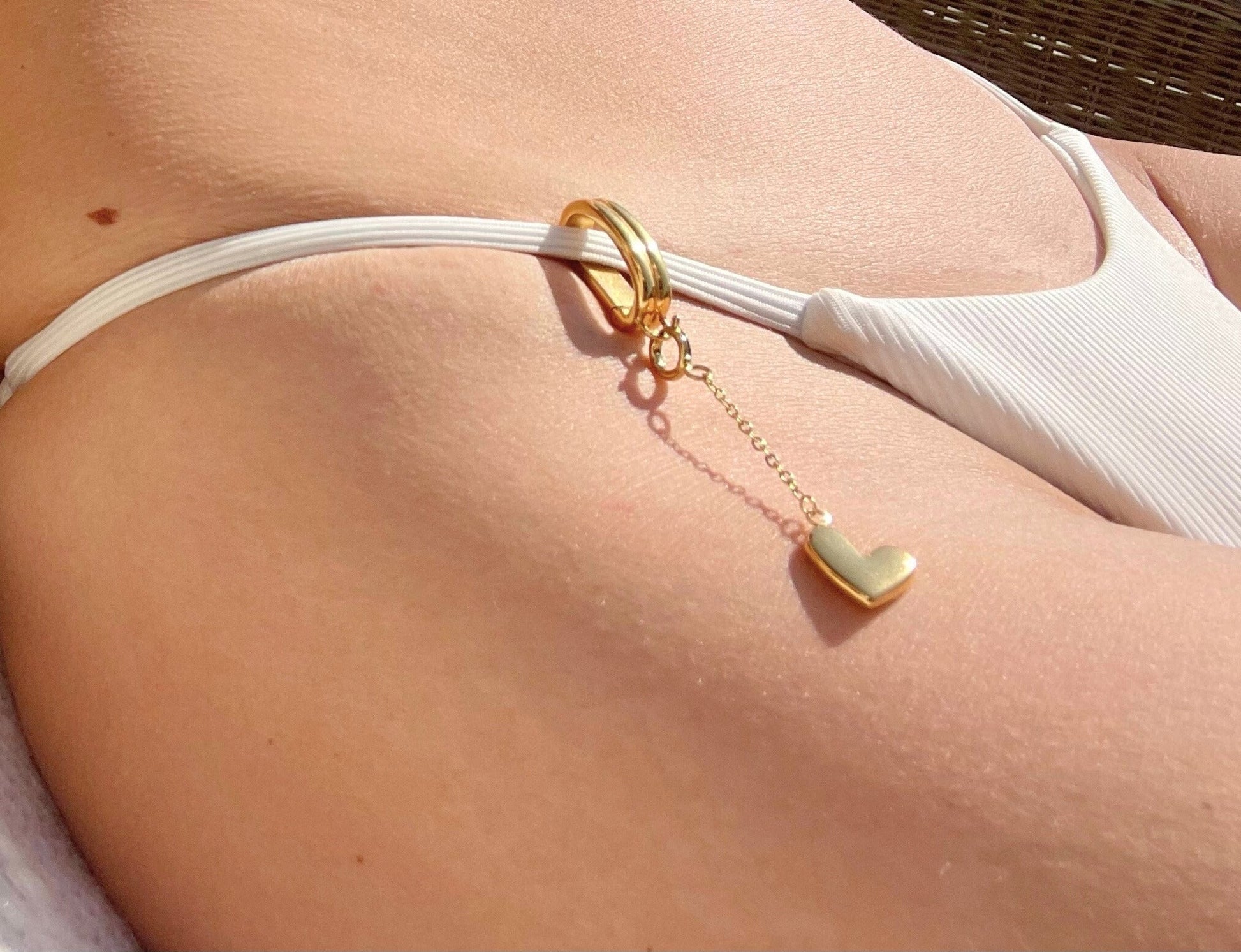Laissez parler votre cœur avec le Bijou Impérial Cœur d’Or, une pièce élégante et intemporelle. Confectionné en acier inoxydable doré, ce bijou se compose d’un grand anneau doré à clipser, accompagné d’un pendentif en forme de cœur, pour une touche royale et romantique à vos looks d’été. Idéal pour sublimer vos maillots de bain et sacs de plage avec délicatesse et éclat.