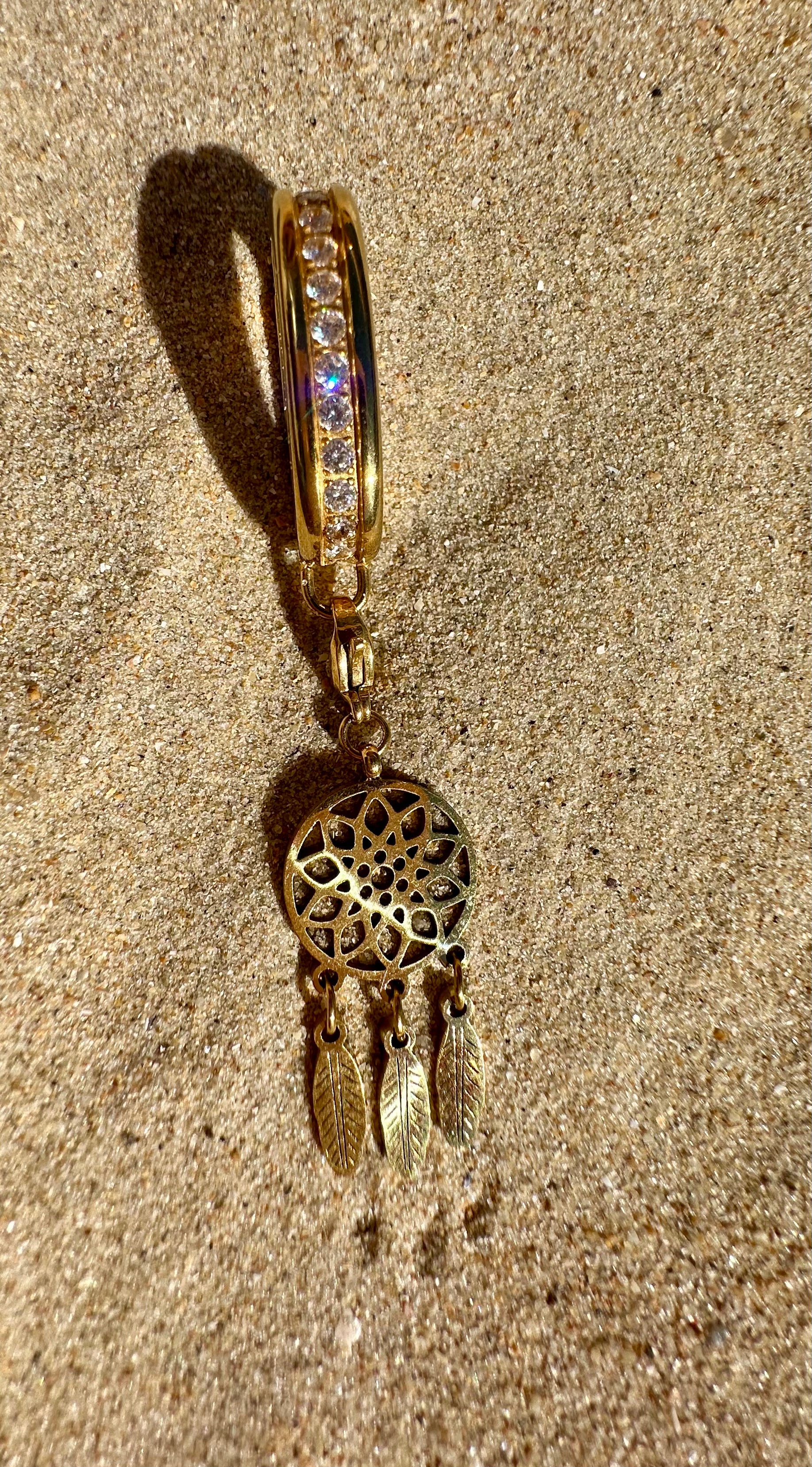 Acier inoxydable doré / Dimensions : 4,7 cm / Poids : 5 g / Design : Petit anneau doré et rouge avec pendentif hirondelle dorée.